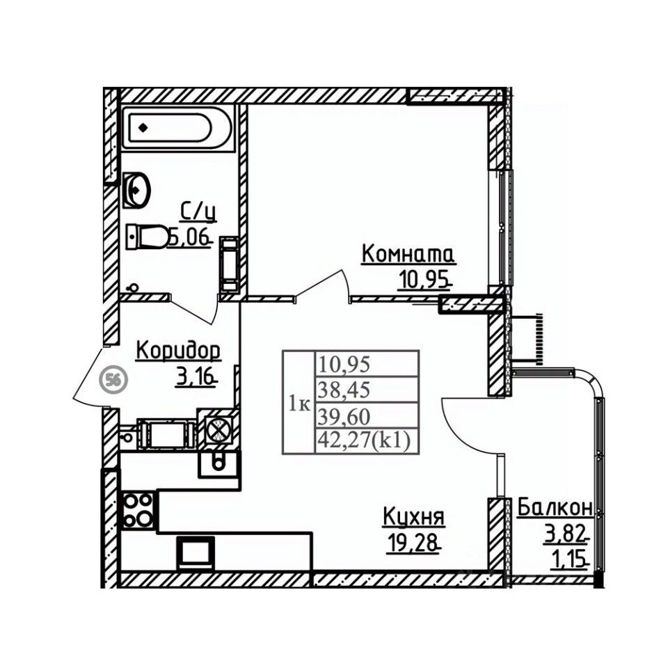Общая площадь39,6 м2