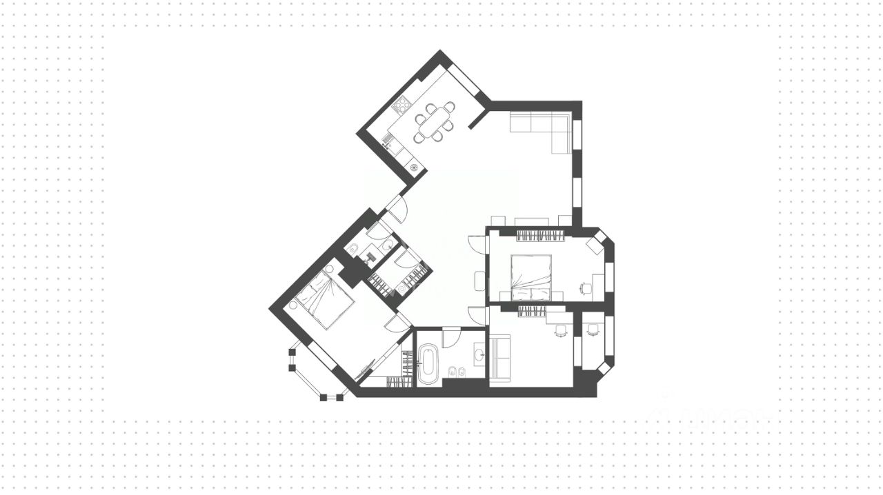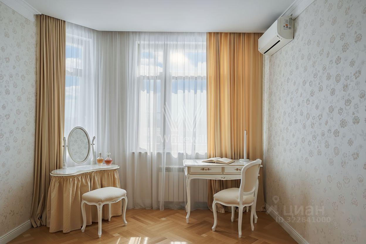 Установлены премиальные двери Union, деревянные стеклопакеты и система индивидуального кондиционирования. Функциональная планировка включает кухню-гостиную, три спальни, 2 санузла, две гардеробные, 3 лоджии и холл. Окна ориентированы на три стороны, открываются виды на город и благоустроенную территорию комплекса. Предусмотрено машиноместо за отдельную плату.