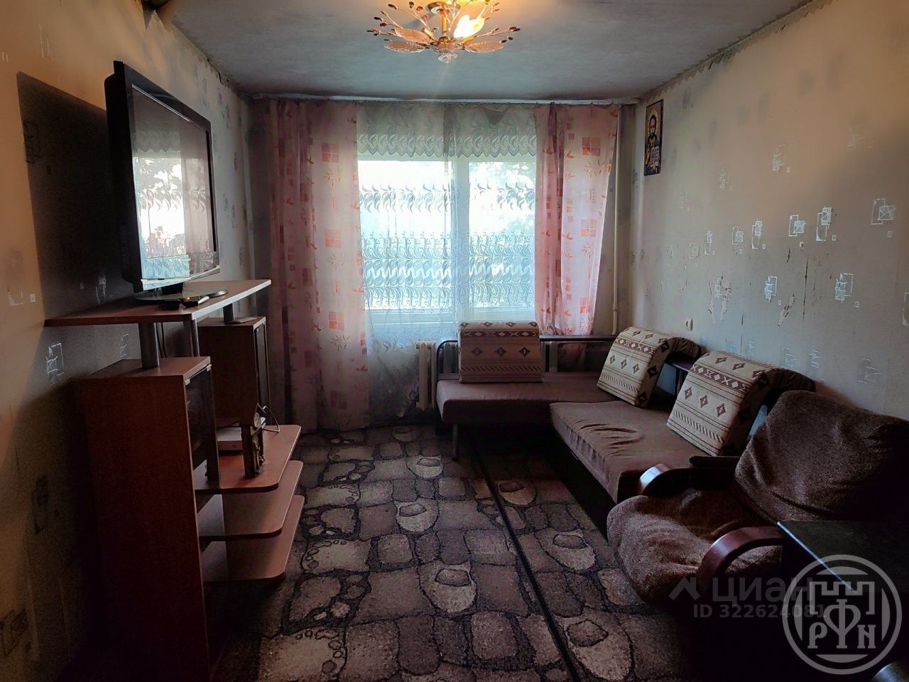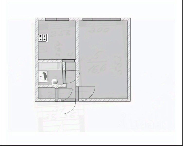 Общая площадь- 30.3 м. кухня- 7.4, комната- 16,6 м. Дом панельный, 1972 года.