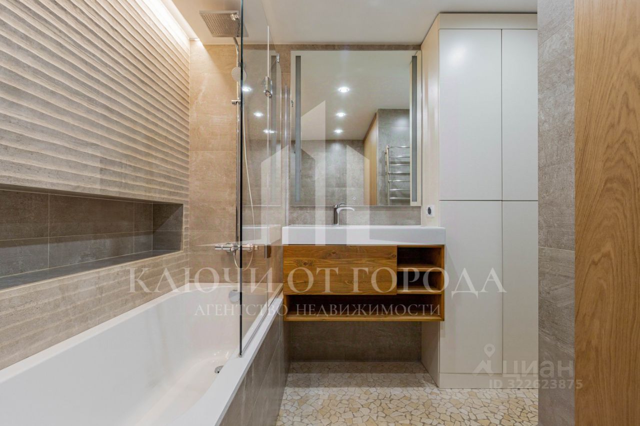 Премиальные детали: сценарии света, трековое LEDосвещение, полы без порогов, бесшовные шкафы, постирочнаяшкаф (стиральная/сушильная + хранение), зеркала с подсветкой, подогревом и розетками.