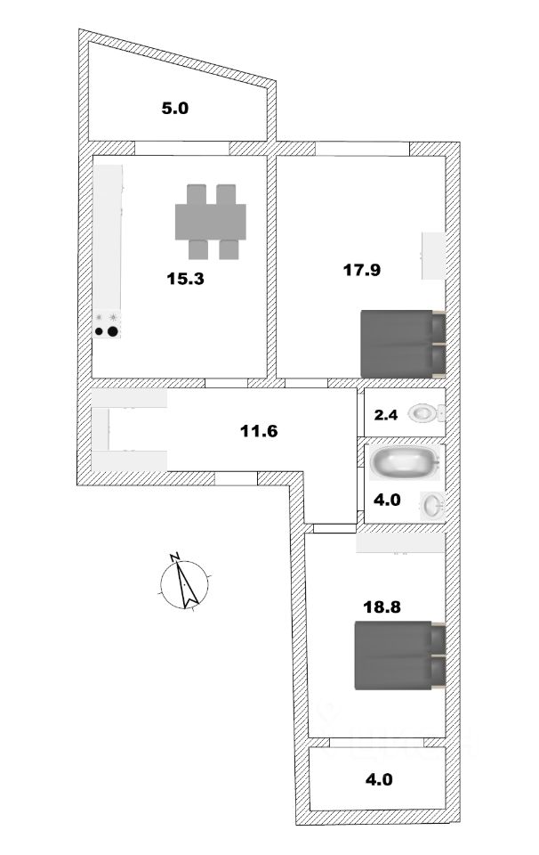 В прямой продаже, евротрешка с большой кухней.