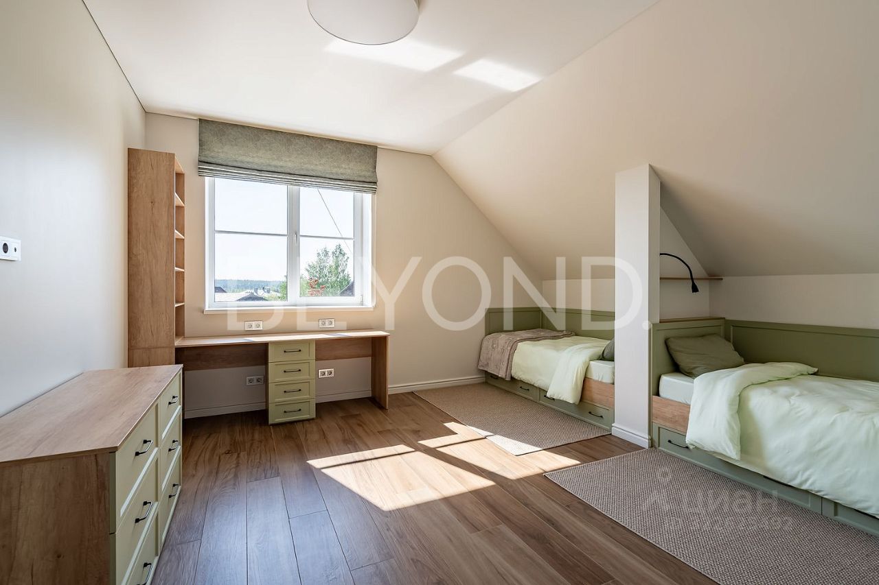 Продается готовый загородный дом общей площадью 220 кв. м на участке 20 соток. Приватное, спокойное и живописное место в пешей доступности от Симагинского озера. Основной дом построен из кирпича на монолитной плите, полностью меблирован и готов к проживанию. На первом этаже расположены: кухня-столовая с выходом на террасу, гостиная зона, гостевая спальня, гардеробная, постирочная, котельная. На втором этаже: мастер-спальня с гардеробной зоной и большой ванной комнатой, гостевая комната, детская, санузел. На участке выполнен дренаж, вымощены дорожки, сделано освещение. Высажены хвойные деревья, посеян газон. Так же на участке расположены баня и гараж. До Симагинского озера с песчаным пляжем- 250 метров. Приватный поселок всего на 15 домовладений - уникальная локация на загородной карте Ленинградской области. Находясь в окружении хвойных лесов Карельского перешейка, он так же обладает исключительной транспортной, социальной и развлекательной инфраструктурой. В непосредственной близости находится парк отдыха для всей семьи ''Озорные белки'', частная школа ''Траектория жизни''. В 10 минутах езды находится Загородный клуб ''Ленинское'', где есть ледовая арена (хоккей/фигурное катание), спортивный зал, кинотеатр, сквош, ресторан. Удобная транспортная доступность, до Санкт-Петербурга можно добрать за 45 минут по ЗСД. До пляжей Финского залива- 15 минут.