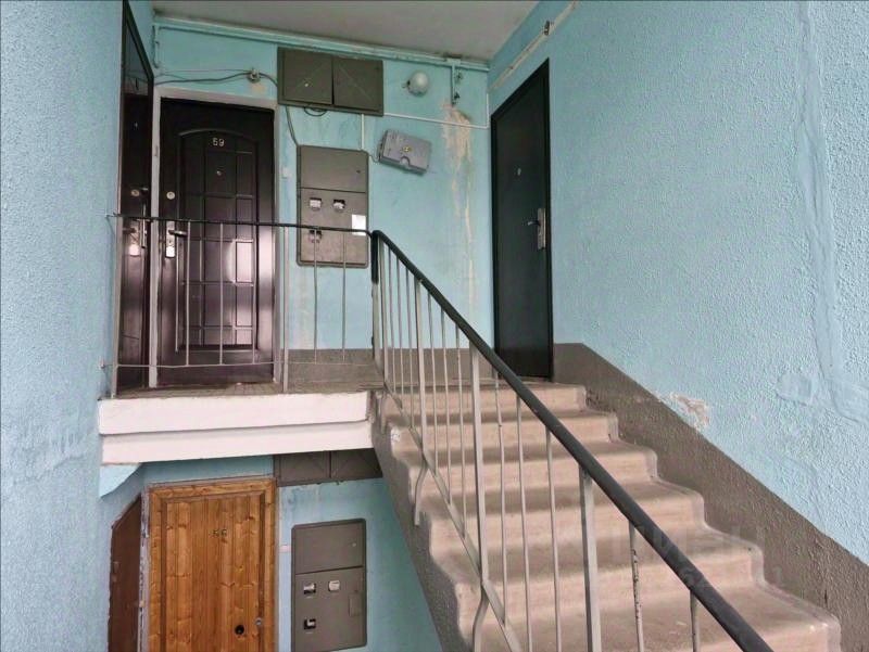 Общая площадь 42,9 кв.м, комнаты смежные 16,7 и 13,4 кв.м на две стороны, кухня 5,2 кв.м, санузел раздельный, балкон. Без ремонта.