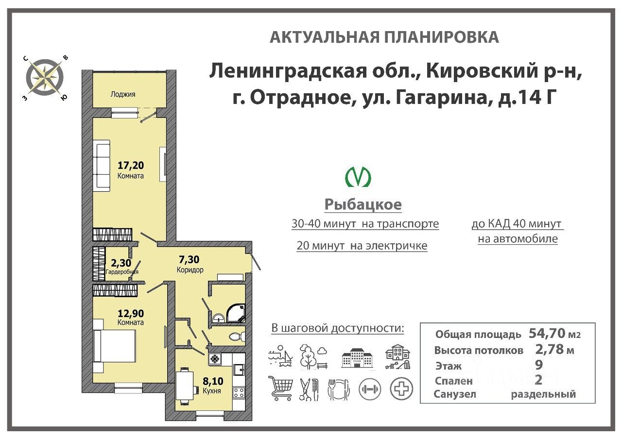 Транспортная доступность: - До метро ''Рыбацкое'' — 20 минут на электричке, 30-40 минут на маршрутке или автобусе. - До КАД — всего 40 минут на автомобиле. - Много парковочных мест для вашего удобства.