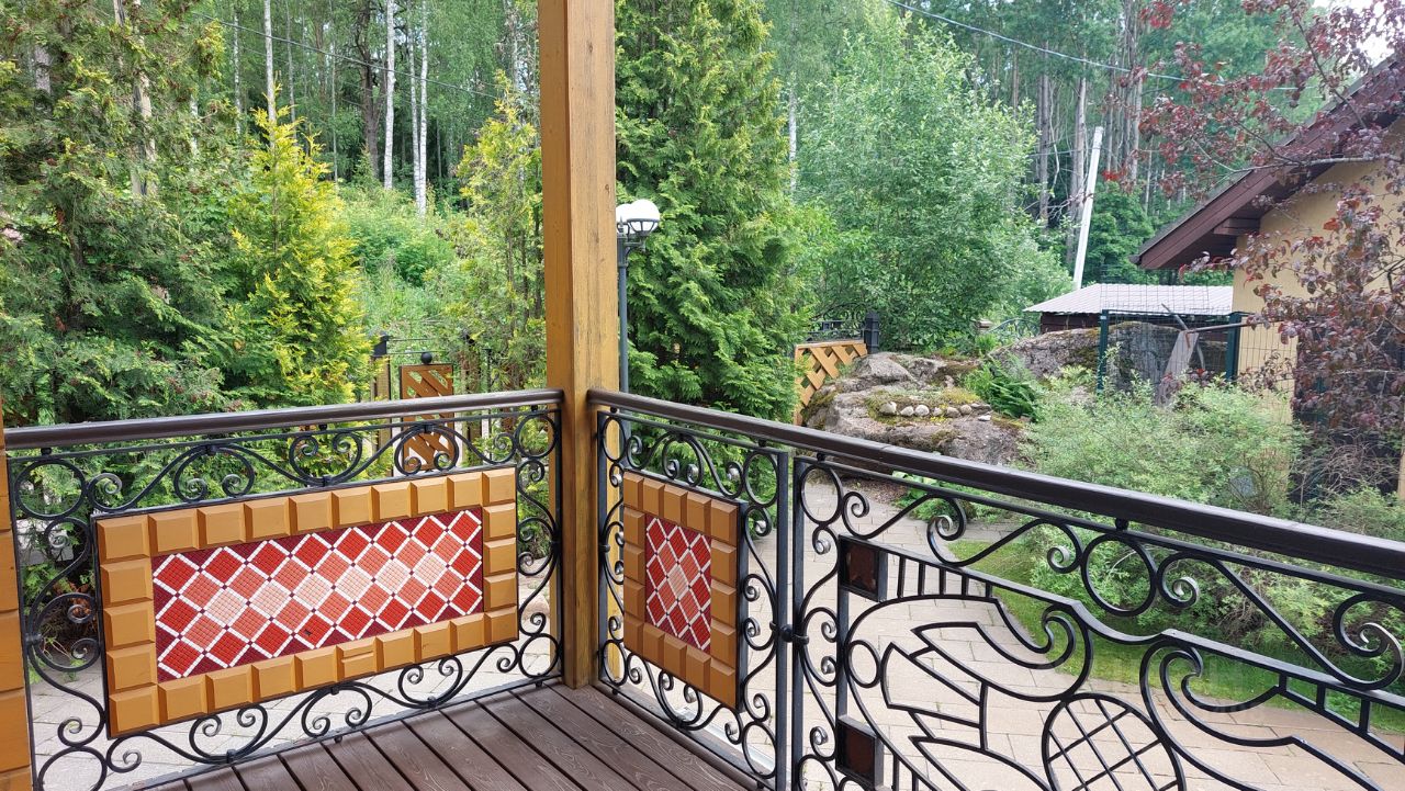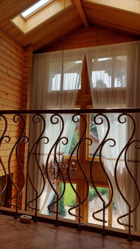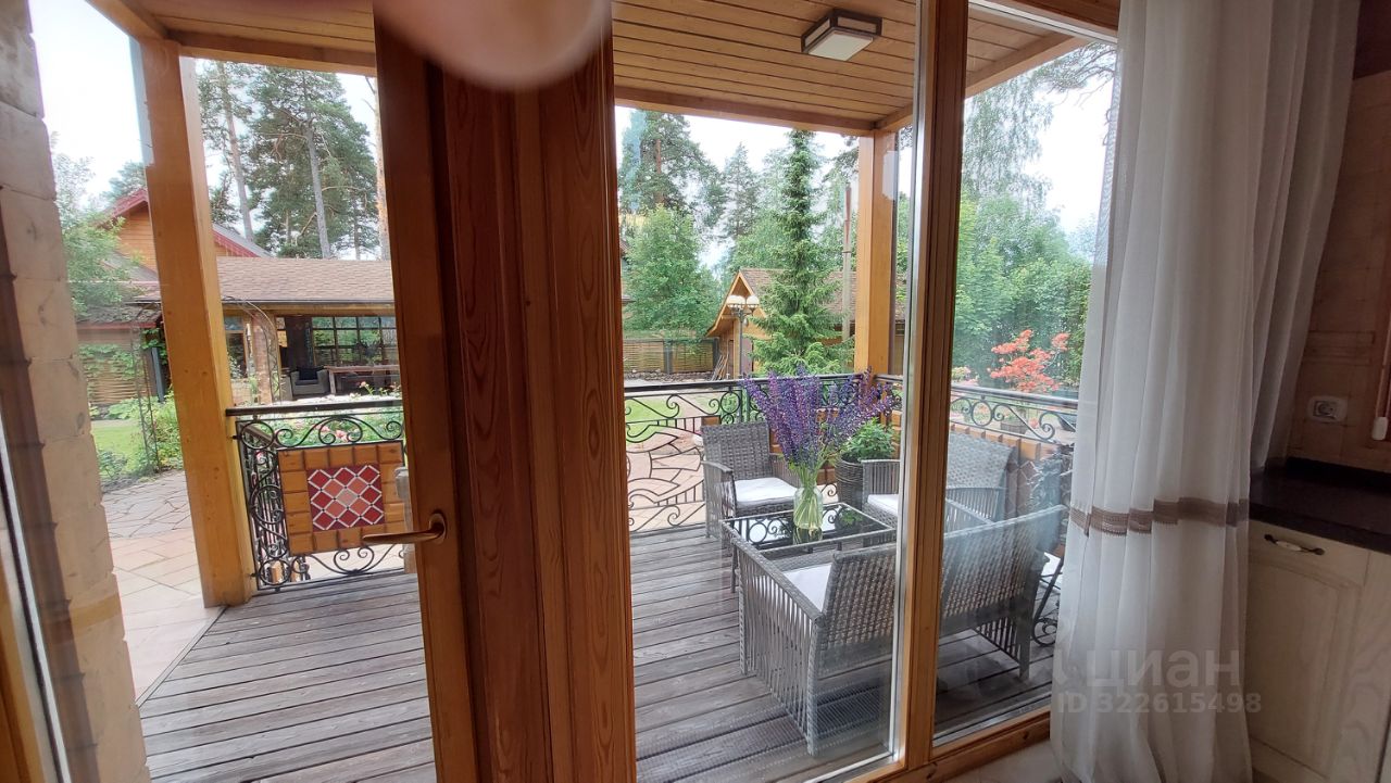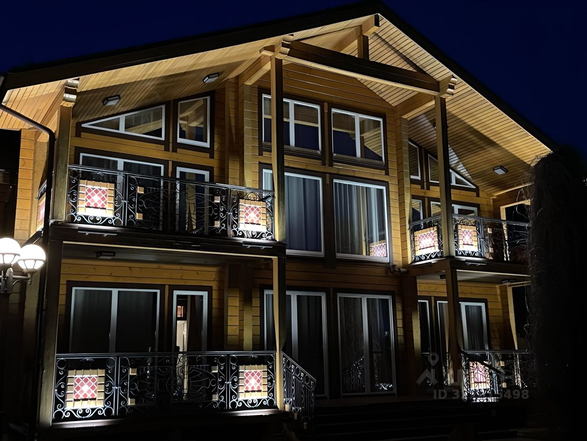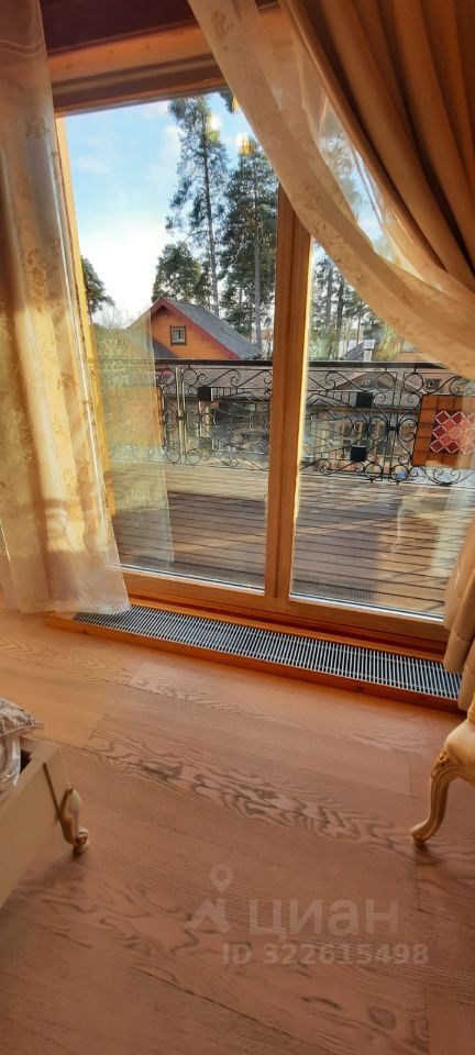 Дом двухэтажный отличного качества из клеенного бруса финского производства построен 10 лет назад. Толщина наружных и внутренних стен 20 см. Окна и двери из массива древесины со стеклопакетами. Фундамент - монолитная плита. Кровля - финская мягкая '' Тигула''. Планировка дома и отделка выполнены по индивидуальному дизайн-проекту высокого качества с применение дерева и керамики. На первом этаже дома расположены прихожая с гардеробом, санузел, огромное открытое пространство со вторым светом и двумя зонами: диванной зоной отдыха и кухней-столовой. В центре расположен стильный стеклянный камин-пирамида. Так же на первом этаже расположен спортивно - банный блок с тренажерным залом, сауной, хамамом, русской парной и купелью. На втором этаже две спальни с гардеробными комнатами и балконами и мастер-спальня с балконом. В центре этажа - ванная комната 24 м. кв. с джакузи. Дом полностью готов для проживания и продается со всей мебелью, техникой и пр.