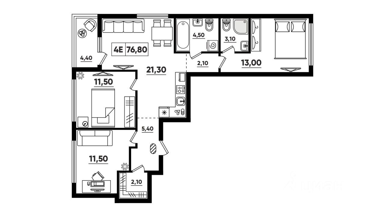 Характеристики квартиры: -Общая площадь: 77,9 м² -Кухня-гостиная: 21,3 м² — идеальна для семейных вечеров -Жилая площадь: 36 м² — 3 изолированные комнаты для комфорта каждого -Высота потолков: 2,9 м -Последний, 7 этаж -Просторная лоджия -Гардеробная комната -Раздельный санузел -Чистовая отделка — въезжайте и живите!