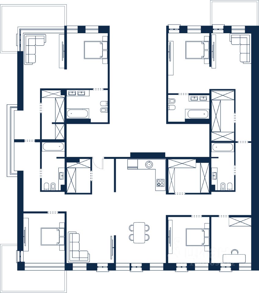 Продаётся 8-комнатная квартира в строящемся доме (Дом 2), срок сдачи: II-кв. 2028, общей площадью 319.38 кв.м., на 3 этаже. Volna Residence - это комплекс для жизни на территории комплекса Volna, объединённый с отелем общей концепцией и инфраструктурой. 3 малоэтажных корпуса на 520 номеров расположены на первой береговой линии и имеют собственный бассейн.