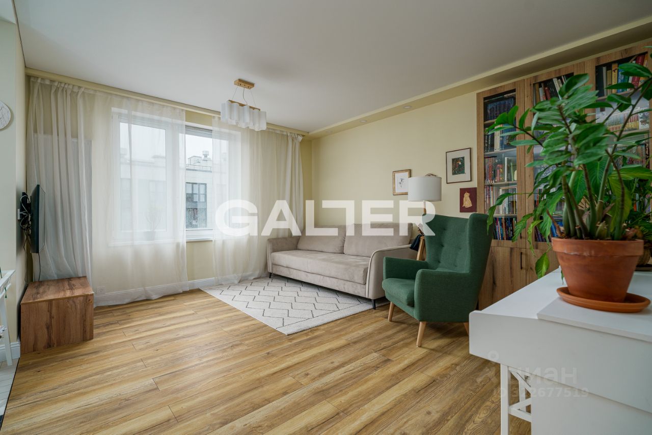 Продается двухкомнатная квартира с дизайнерским ремонтом и кухней-гостиной в современном жилом комплексе в историческом центре Петербурга.