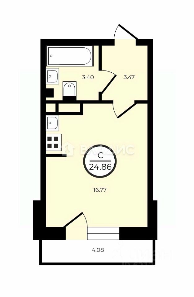 - жилая площадь с учетом выделенной кухонной зоны 16,77 м2
