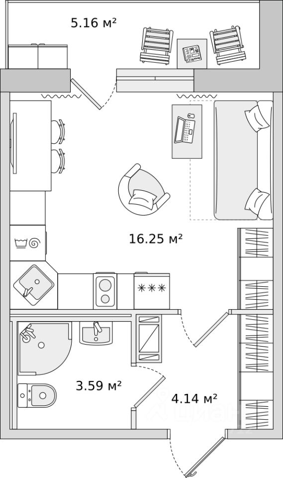 Продаётся квартира-студия в жилом комплексе ЦДС ''Новые Горизонты'', участок 7, Корпус 1