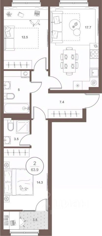 продам 2-к квартира6 709 500 ₽