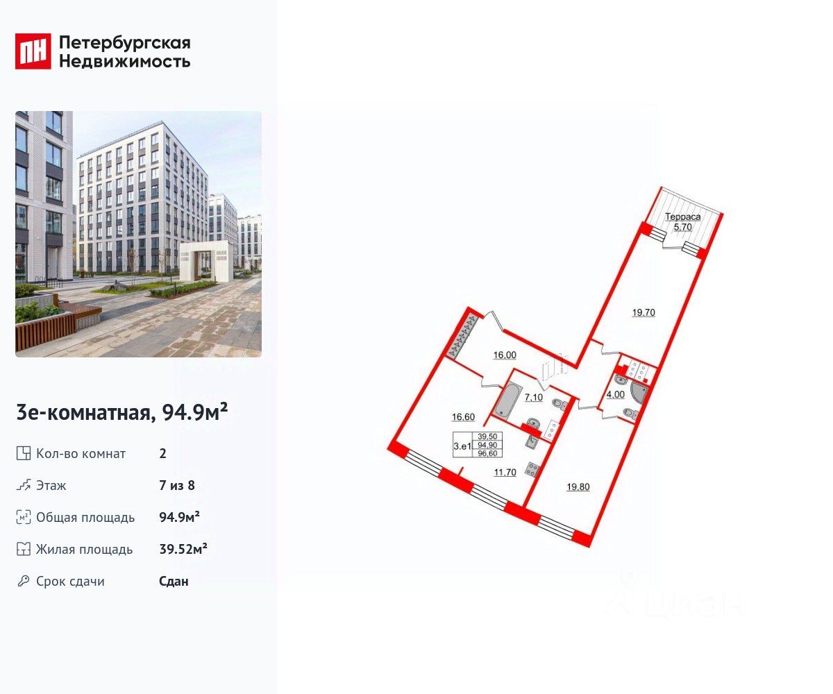 Удобная, классическая, функциональная европланировка, большая кухня-гостиная 28.49 м², просторная прихожая 15.97 м². Общая площадь квартиры - 94.9 м², жилая 39.52 м², высота потолка 3 м.