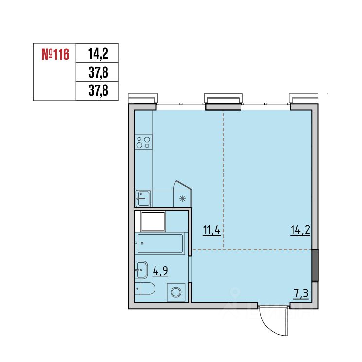 Общая площадь37,7 м2