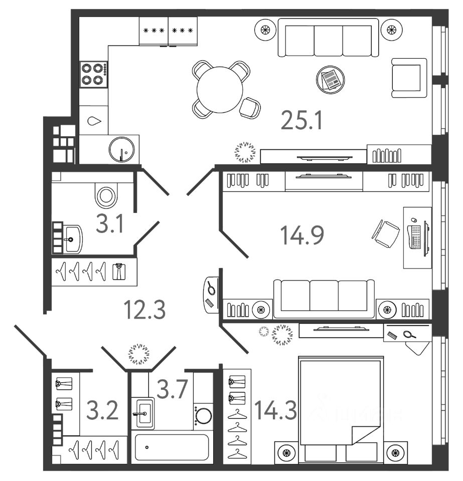 О КВАРТИРЕ: Светлая и просторная. С увеличенными окнами. С большой кухней -столовой 25м2. С уютными спальнями и раздельным санузлом. Территория дома полностью огорожена и охраняется круглосуточно. Войти в парадные можно только со стороны внутреннего двора по бесконтактному электронному ключу. Спланировать встречу гостей легко и удобно через специальное приложение для жителей.