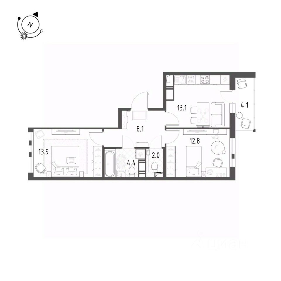Кухня13,1 м2
