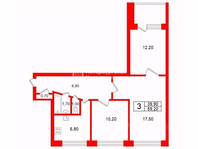 Раздельный санузел, большая кухня 7 кв.м., вместительный коридор