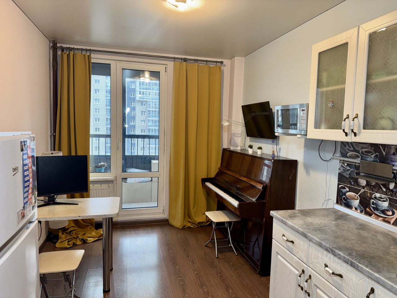 АПАРТАМЕНТЫ: - 2Евро, 35,3 м² + лоджия 7,6 м²- максимум полезной площади - 9 этаж из 19 — идеальная высота - ПАНОРАМНЫЕ окна и много света - Просторная КОМНАТА — 13,5 м² - КУХНЯ-ГОСТИНАЯ — 11,8 м², для уютных вечеров - ГАРДЕРОБНАЯ — 2,3 м² - Потолки — 2,75 м - МЕБЕЛЬ И ТЕХНИКА ОСТАЮТСЯ — заходите и живите!