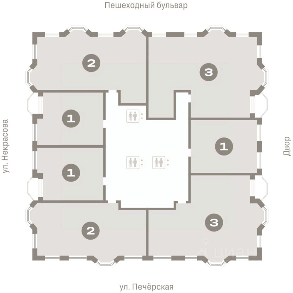 Квартира с кухней-гостиной и одной спальней в квартале ''На Некрасова''. Особенности планировки: предчистовая отделка. квартиры в нашей базе: НКР02-Ж1.16.6.