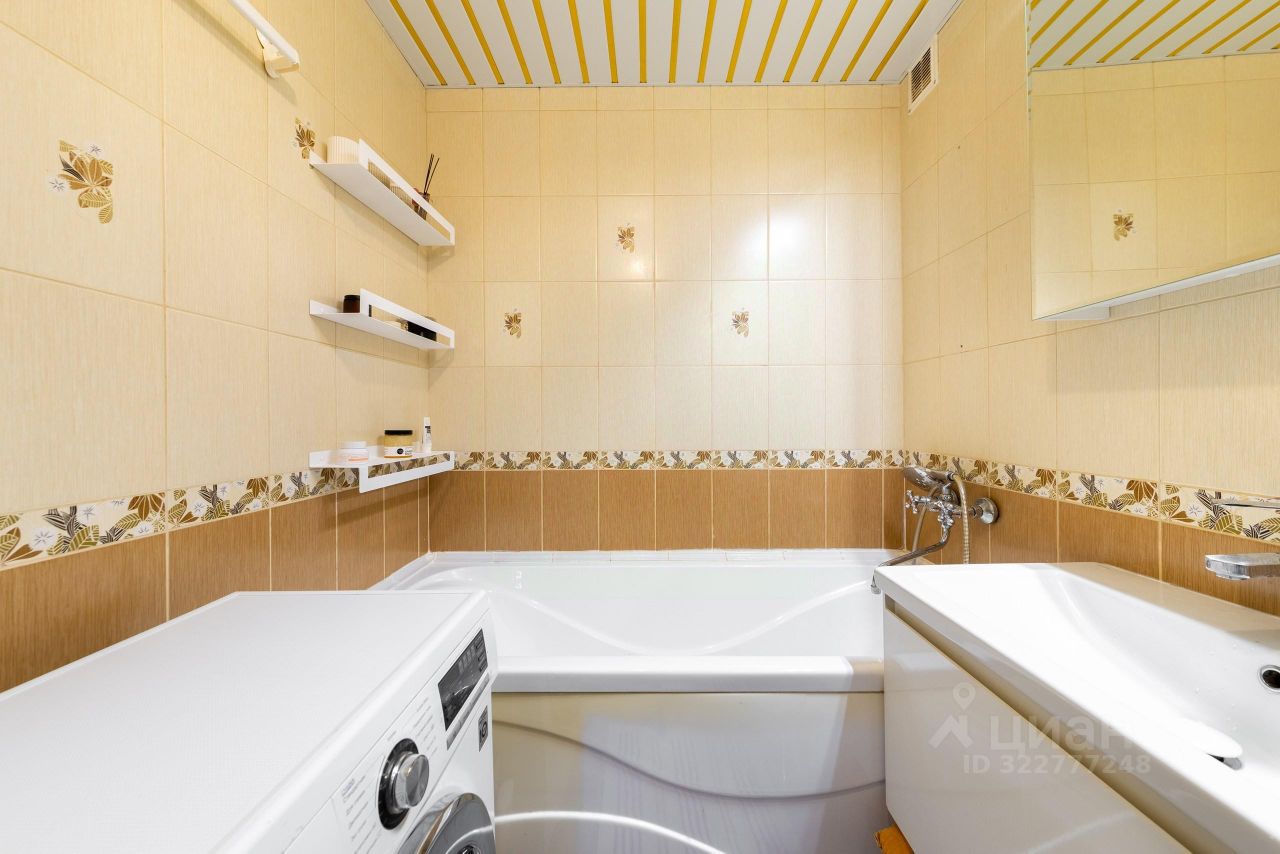 Санузел раздельный, отделан плиткой. В ванной устанавливается стиральная машина, в туалете сделаны дополнительные полочки для хранения.