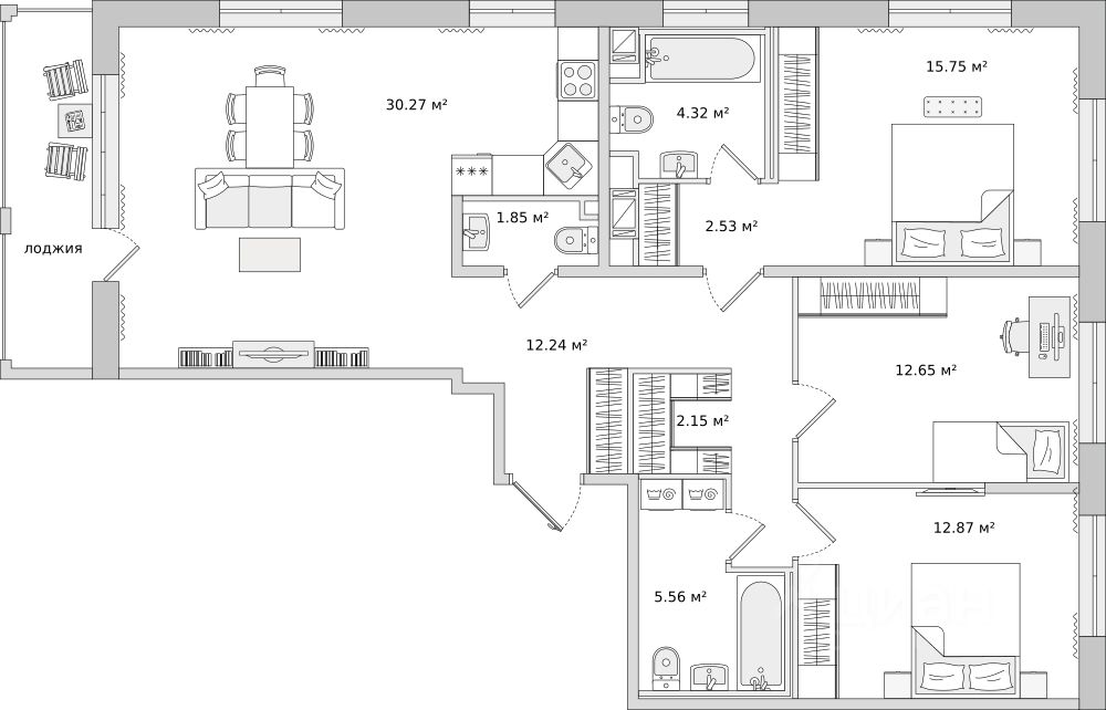 Продаётся трёхкомнатная квартира в жилом комплексе ЦДС Dreamline, Корпус 2.8