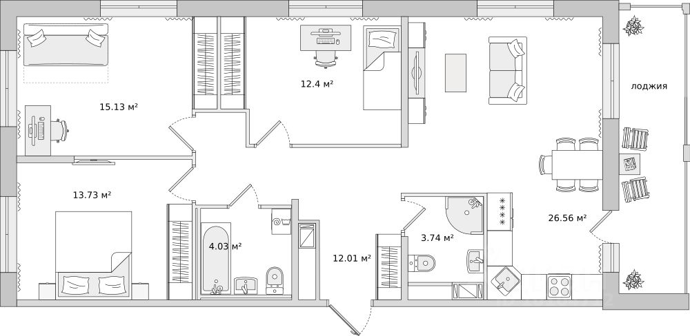Продаётся трёхкомнатная квартира в жилом комплексе ЦДС Dreamline, Корпус 2.8