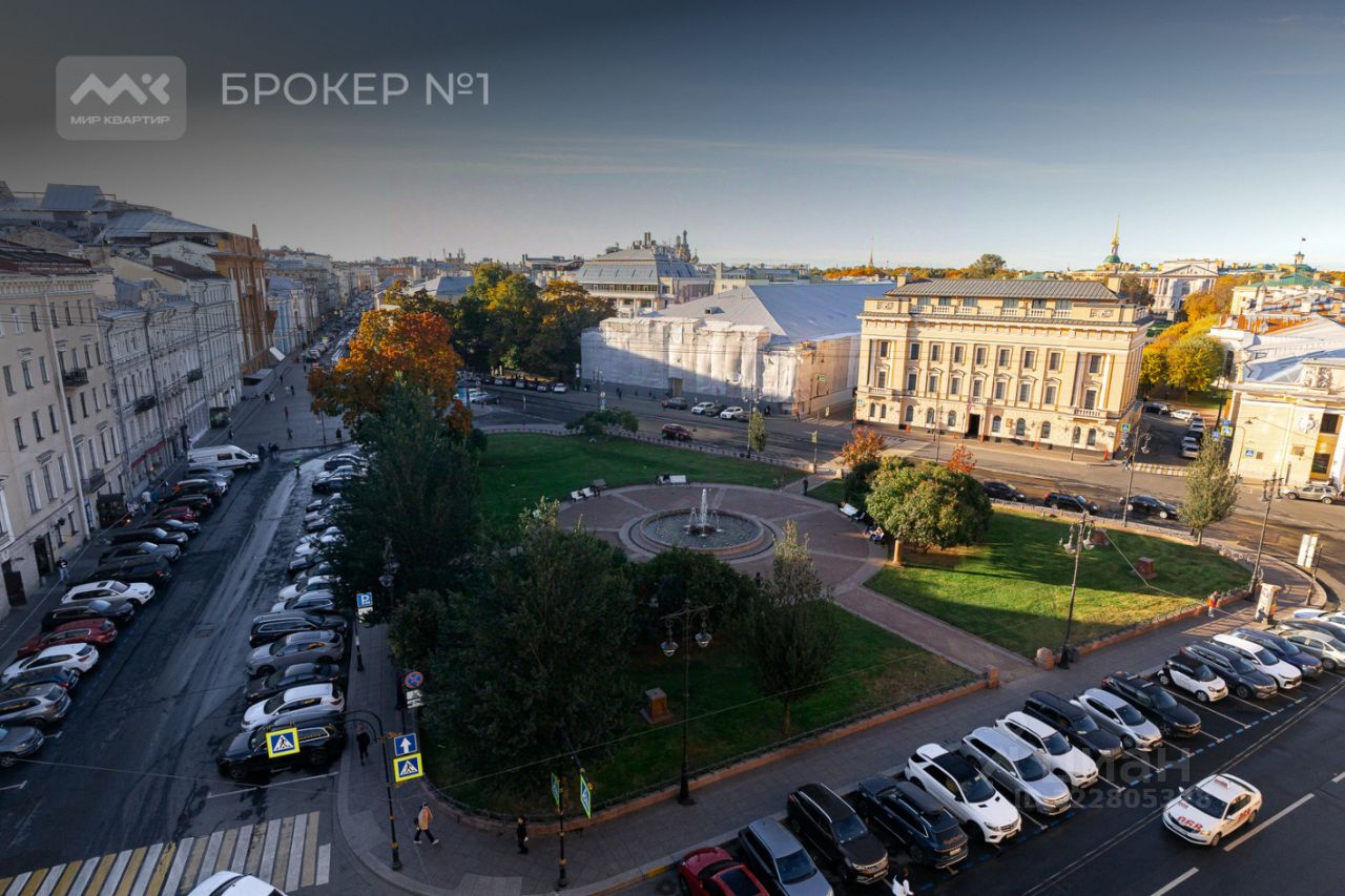 Арт. 119189665 Представьте: вы поднимаетесь на шестой этаж исторического доходного дома на углу Караванной и Итальянской, и через пару шагов — личная трибуна над самой сердцевиной ''Золотого треугольника''. Лоджия этой двухуровневой квартиры смотрит на Манежную площадь так, как её почти никто не видит: фронтально, широко, с полным раскрытием ансамбля — вид редкий, завораживающий и, без преувеличений, один из лучших в центре. Квартира Планировка: основной уровень на 6-м этаже + полноценный мансардный — редкая комбинация для исторического центра Петербурга. Вид: ваша уникальная лоджия даст вам возможность любоваться на весь овал Манежной площади, фонтан, конюшенные корпуса и Михайловский манеж, ракурс открыт и не перекрыт соседними зданиями.