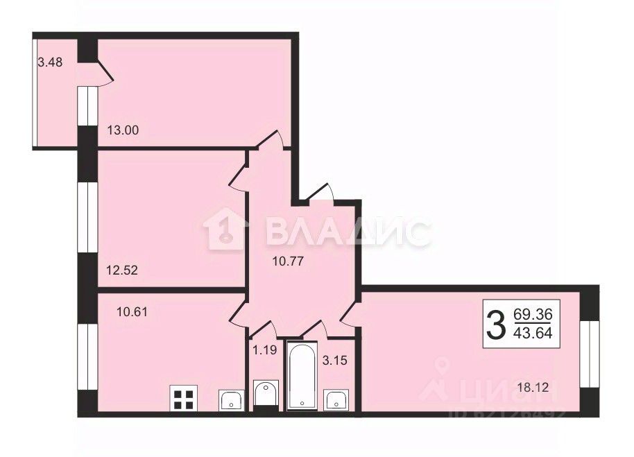 Код объекта: 1850493. ПРОСТОРНАЯ и УЮТНАЯ 3-комнатная квартира в престижном районе Санкт-Петербурга.