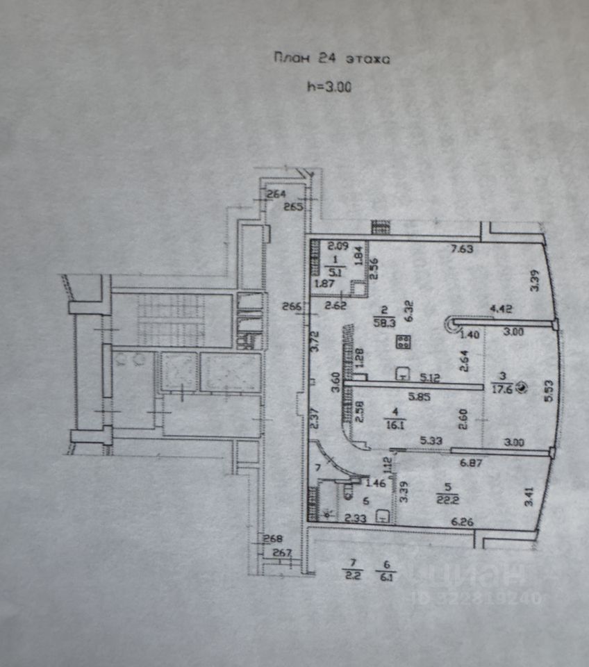 Кухня-гостиная 58,3 кв.м., две раздельные комнаты площадью 22,2 кв.м. и 16,1 кв.м., имеется гардеробная 5,1 кв.м., техническое помещение 2,2 кв.м., совмещенный санузел 5 кв.м. (также, имеется второй (гостевой) санузел).