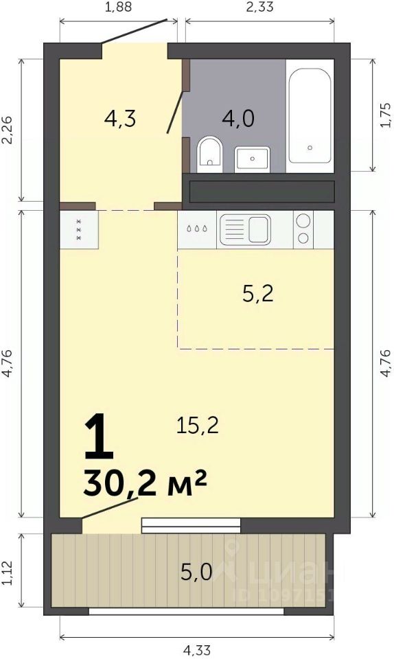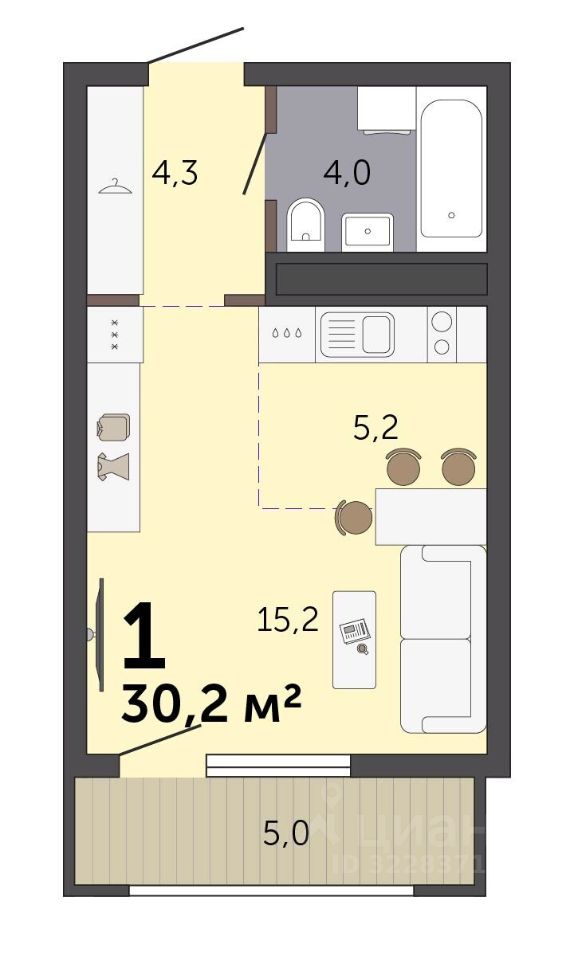 Общая площадь30,2 м2