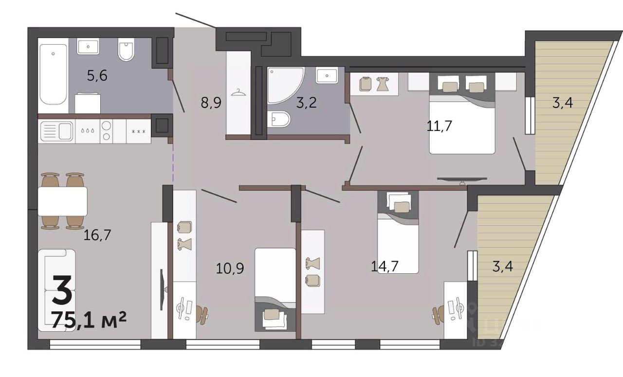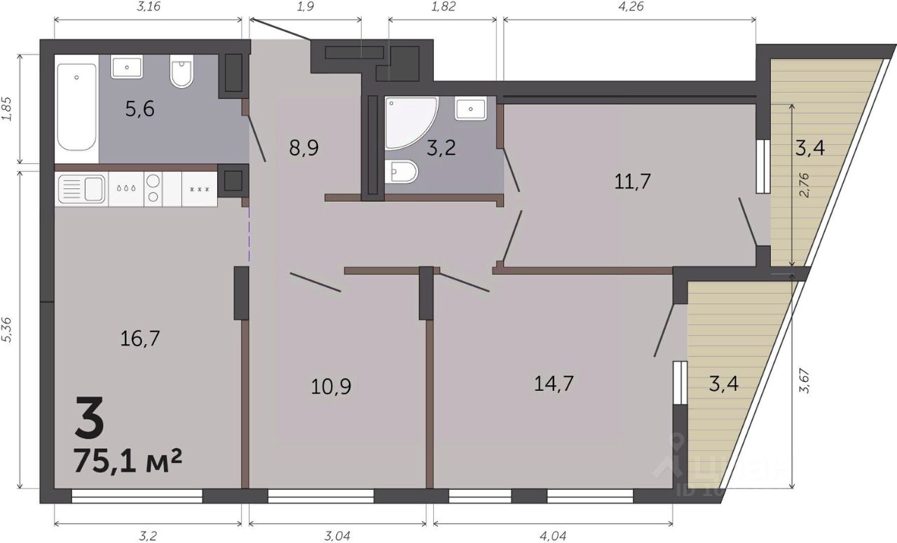 Общая площадь75,1 м2