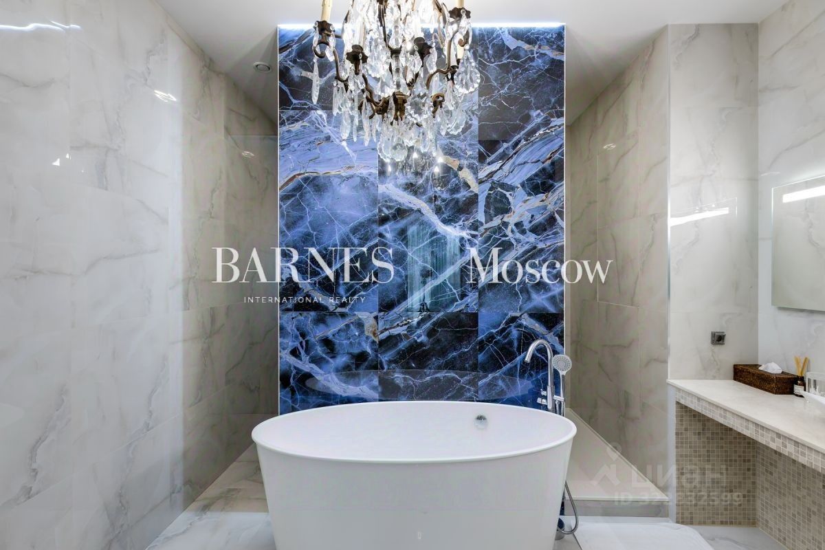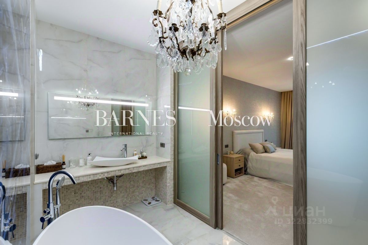 В квартире выполнена дизайнерская отделка в изысканном современном стиле. Функциональное планировочное решение: просторная гостиная с зонами столовой и кухни, мастер-спальня с санузлом, вторая спальня, 2 санузла, гардеробная.