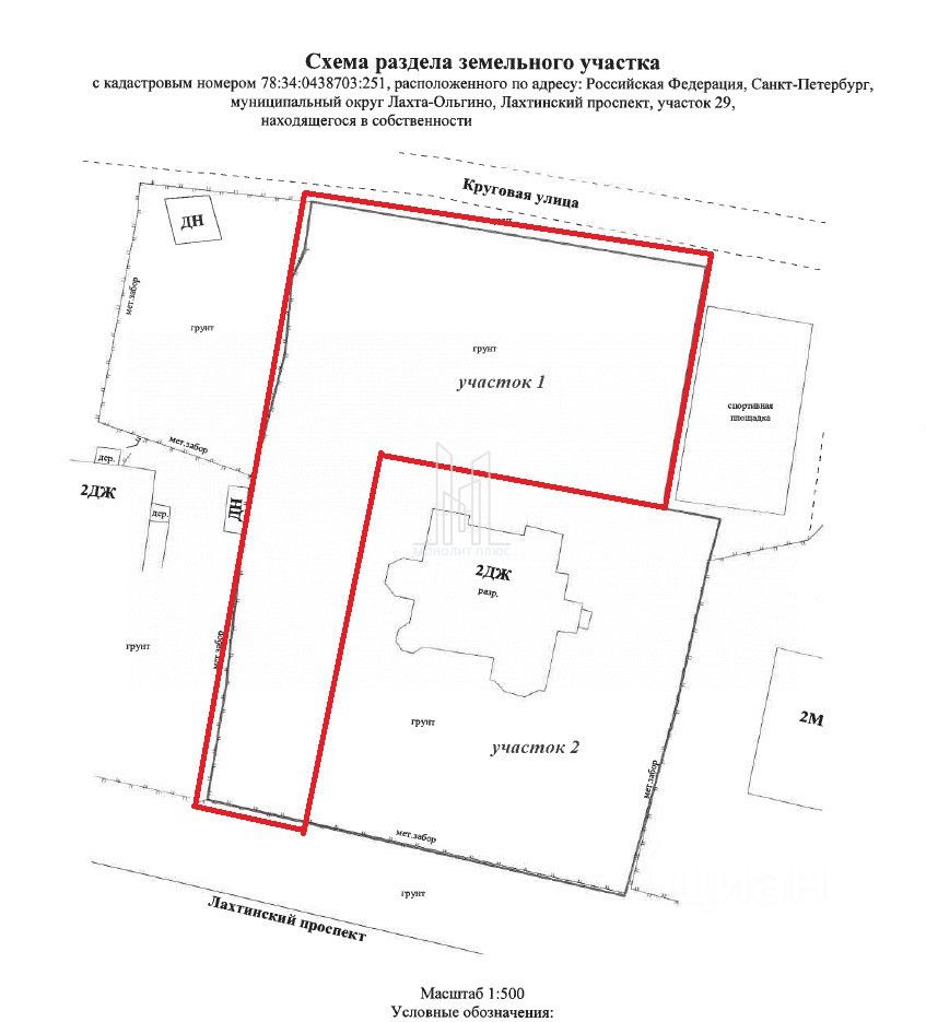 Заезд на участок с двух сторон - с Лахтинского проспекта и Приморского шоссе по Круговой улице.