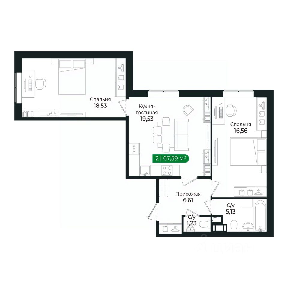 Для тех, кто ищет уютное и практичное жилье (евротрешка). Наличие двух отдельных комнат позволяет обустроить спальню, гостиную или детскую комнату. Кухня большого размера и правильной формы. Санузел раздельный. Система хранения располагается во входной зоне. Грязная зона удалена от основной части квартиры.