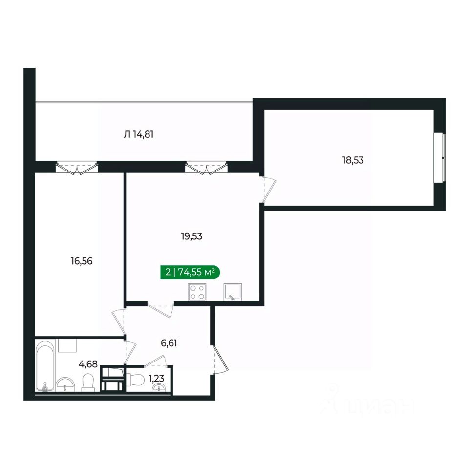 Для тех, кто ищет уютное и практичное жилье (евротрешка). Наличие двух отдельных комнат позволяет обустроить спальню, гостиную или детскую комнату. Кухня большого размера и правильной формы. Санузел раздельный. Система хранения располагается во входной зоне. Грязная зона удалена от основной части квартиры. Лоджия (14м2) станет отличным местом для отдыха на свежем воздухе.