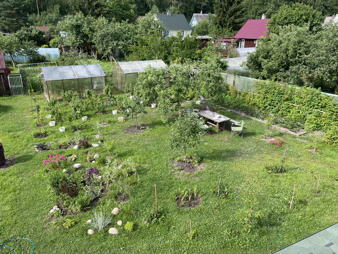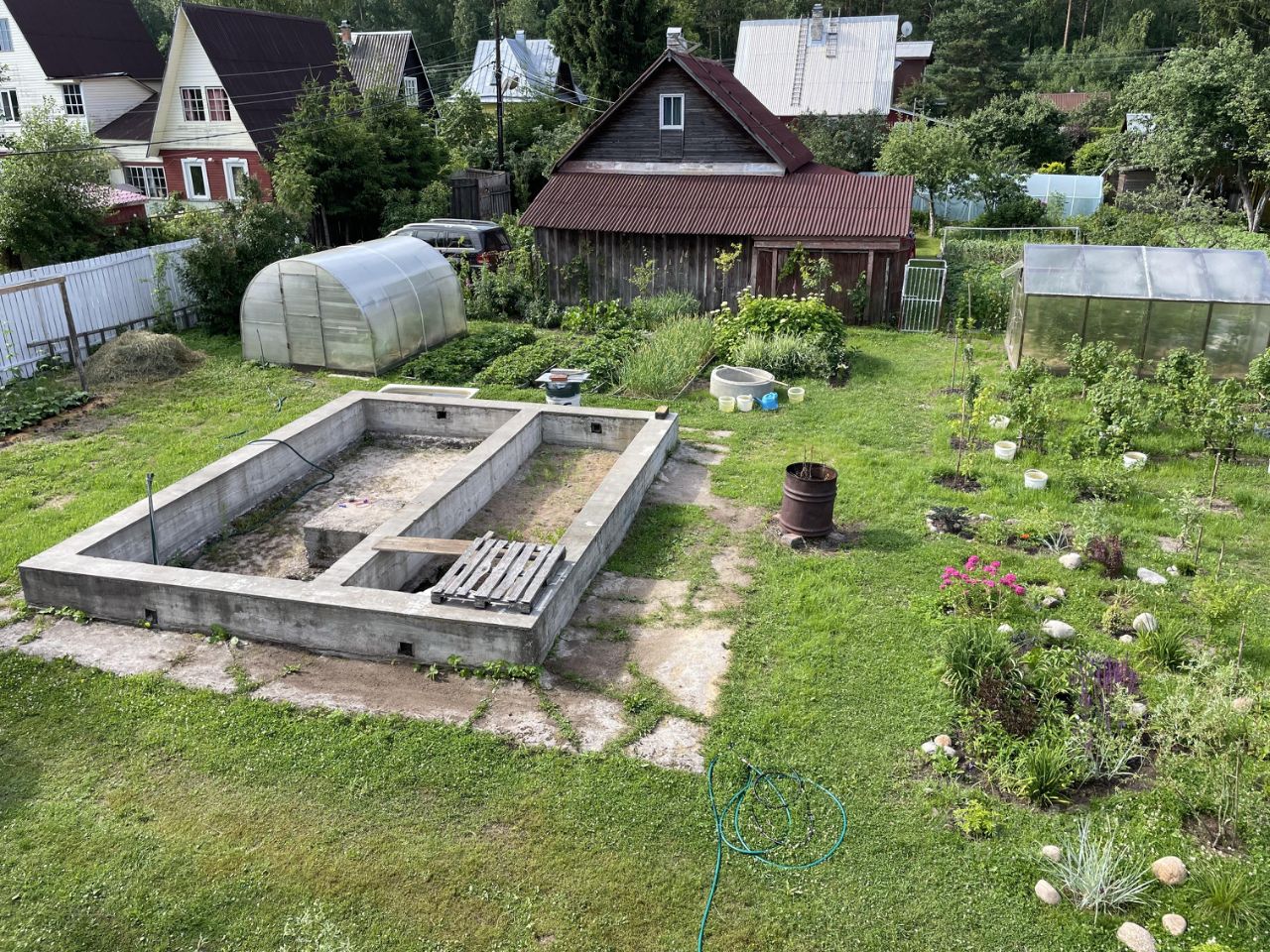 Участок в живописном месте, в часе езды от Санкт-Петербурга, как на личном, так и на общественном (муниципальные автобусы - остановка в 300 м. и ж.д. транспорт - платформа в 100 м от участка) транспорте. На участок заведено электричество (15кВт), высокоскоростной интернет (оптоволокно), есть летний водопровод ( + сеть для полива по всему участку с быстросъемами и колодец), канализация (станция биологической очистки Китари-5), цифровое ТВ, организовано видеонаблюдение. Также на участке находятся постройки: теплый каркасный Гостевой домик, с мини кухней, полноценным санузлом, комнатой-спальней, Хозблок с уличным туалетом и 2-мя дровниками, бытовка (кунг) - можно в перспективе использовать для временного размещения строителей, 3 теплицы из сотового поликарбоната, выполнен комбинированный свайно-ленточный фундамент и заведены коммуникации под разработанный проект (разделы АР и КР - см. фото (отдам в подарок)) каркасного дома с размерами 11,6*6,9 м с прихожей, кухней-гостиной, 2-мя спальнями, санузлом и сауной, большой террасой. Участок сухой (выполнен дренаж), ровный, с множеством плодовых и декоративных деревьев и кустарников, многолетних растений и цветников. Все соседи очень дружные, многие живут постоянно. Рядом (в 100 м) старый финский родник с вкуснейшей водой, до Финского залива на велосипеде 15 минут, до ближайшего лесного озера также 15 мин на авто, рядом (500м) протекает живописная речка Приветная, в которой водится даже красная рыба, рядом лес с множеством грибов и ягод, пройдя через красивейший луг попадаешь на ферму, на которой можно купить самое свежее молоко, также неподалеку (к заливу) находится музей под открытым небом с загадочными сооружениями и подземными ходами - развалины оборонительной крепости Форт-Ино (форт Николаевский), в садоводстве охраняемый шлагбаум и 2 магазина, рядом (в километре) магазины Стройудача и Пятерочка, чуть дальше (10 мин. на авто) Мини Лента. Дороги в садоводстве ремонтируются, освещаются и чистятся круглогодично. Животный мир локации включает множество различных певчих, по елочкам скачут белочки, в лесу можно встретить лисицу, а по вечерам попить молочка на участок приходят целые семейства милых ежиков.