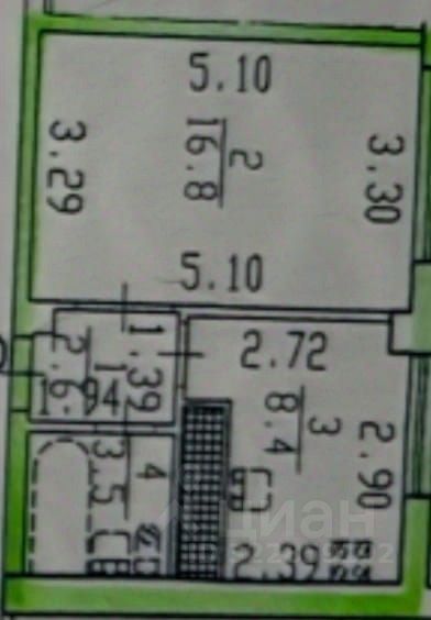 Общая площадь = 31 м. кв. Жилая площадь = 16.8 м. кв. Кухня = 8.3 м. кв. СУ = совмещён. Высота потолков = 2.8 м.