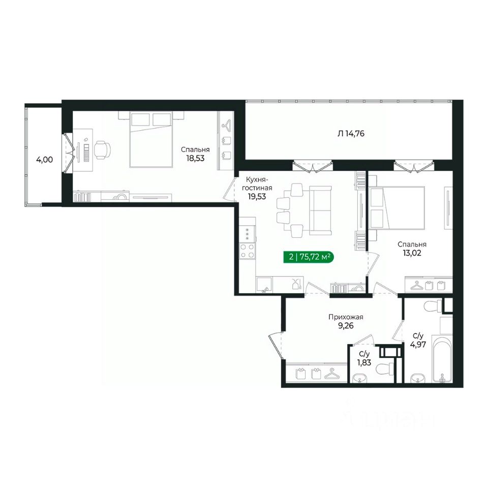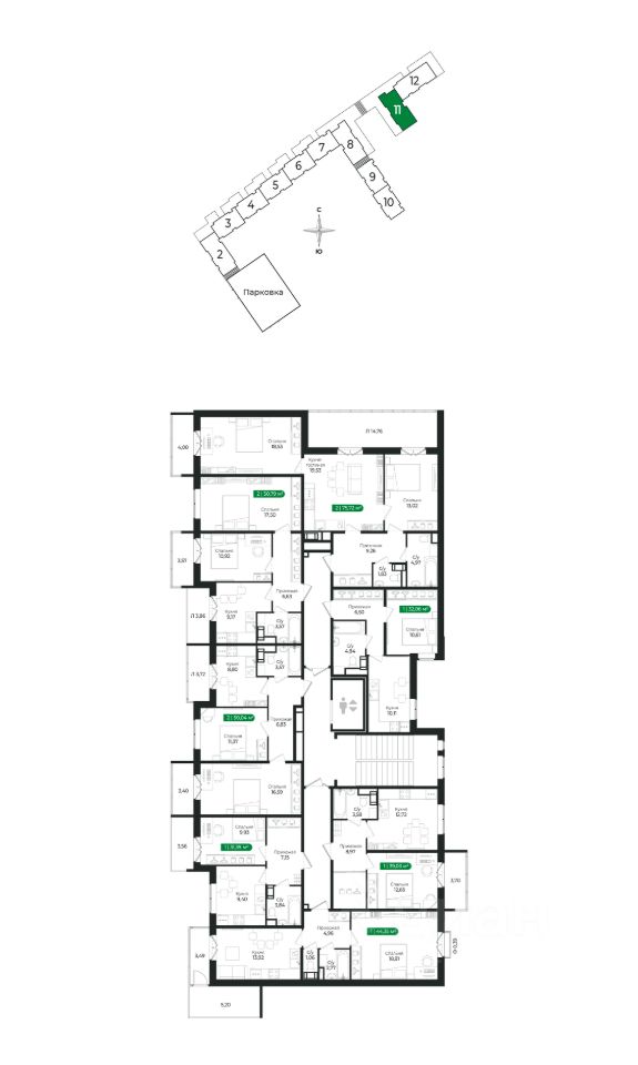 Напрямую продаётся уютная 2-комнатная квартира 348 общей площадью 75,72 м2 во II очереди в жилом комплексе Сертолово Парк от застройщика ГК Алгоритм.