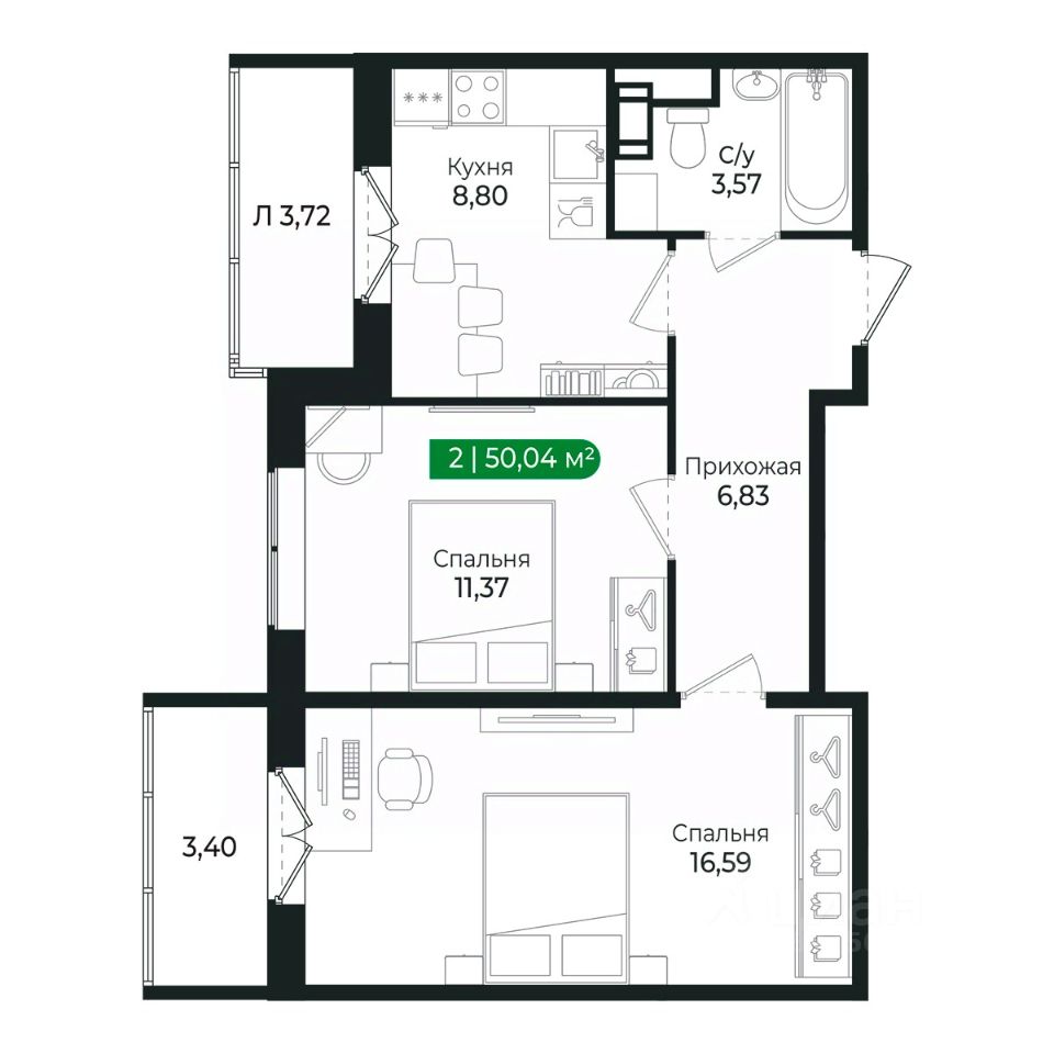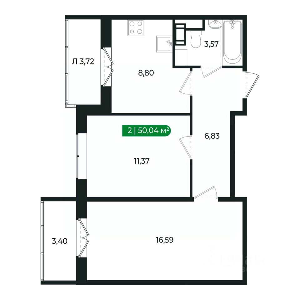 Напрямую продаётся уютная 2-комнатная квартира 360 общей площадью 50,04 м2 во II очереди в жилом комплексе Сертолово Парк от застройщика ГК Алгоритм.
