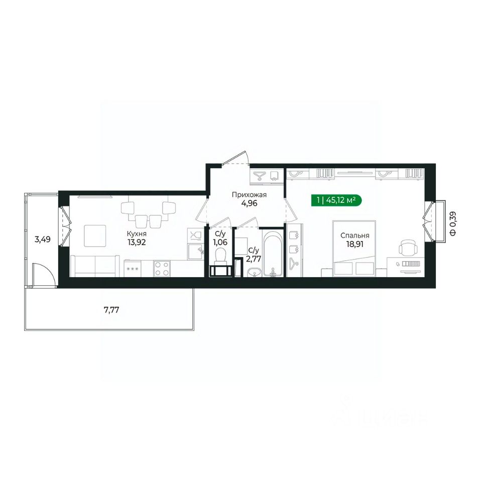 Напрямую продаётся уютная 1-комнатная квартира 379 общей площадью 45,12 м2 во II очереди в жилом комплексе Сертолово Парк от застройщика ГК Алгоритм.