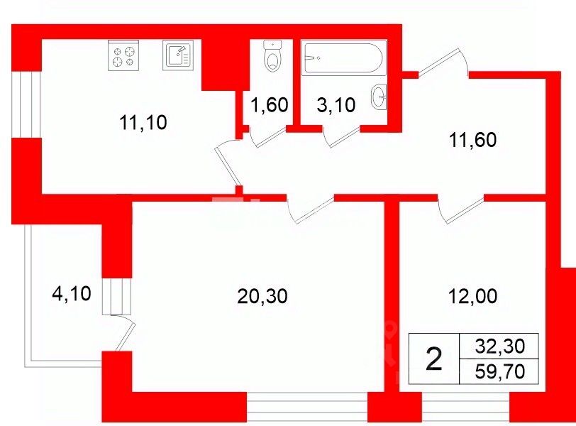 ПЛАНИРОВКА: - Просторная кухня-гостиная, где с комфортом разместятся семья и гости, - Две изолированные комнаты, - Раздельный санузел, - Балкон с остеклением в пол, много естественного света.