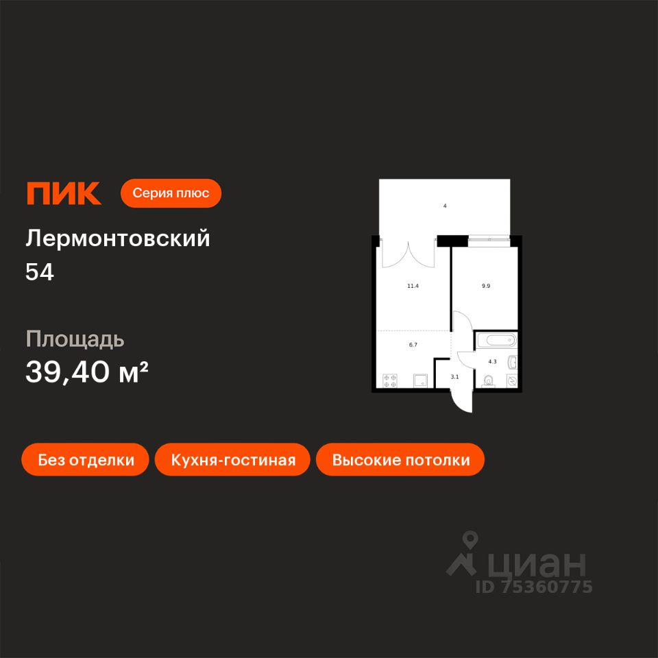 Продаётся 1-комн. квартира площадью 39,4 кв.м на 1 этаже 9 этажного дома (Корпус 2.1, Секция 2) проекта ПИК Лермонтовский 54. Светлый просторный подъезд на уровне земли, функциональная планировка, большие окна, без отделки.