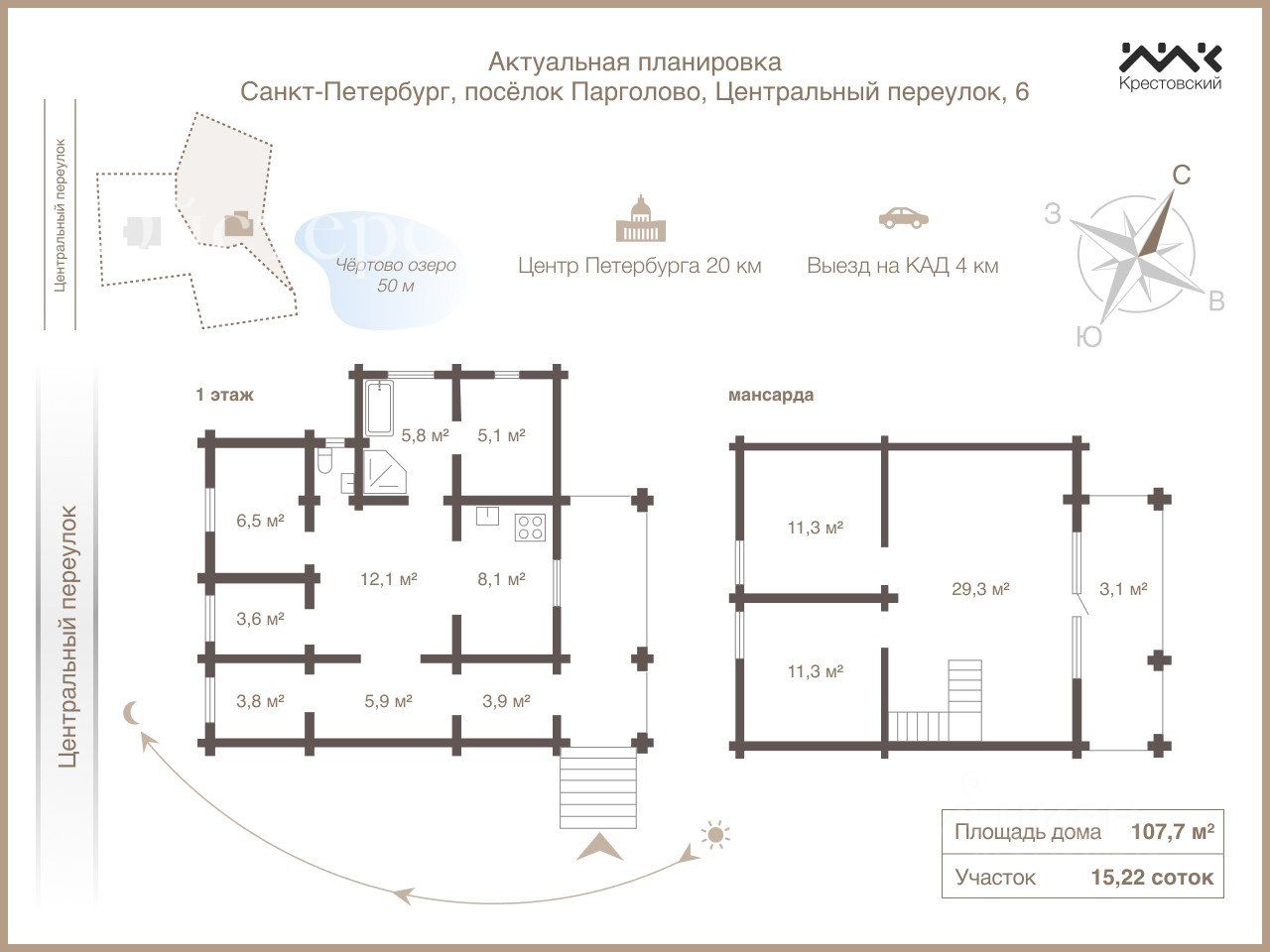 Дом 153,9 м2 + участок 22,8 сот. Дом 107,7 м2 + участок 15,22 сот.