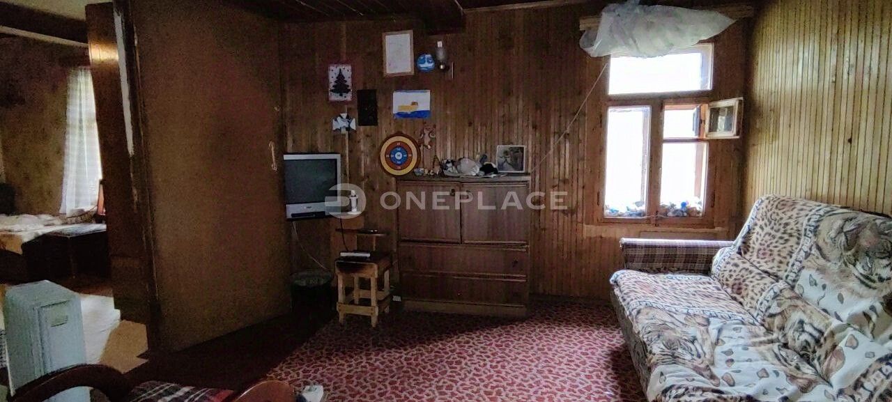 Общая информация: - Адрес: Россия, Ленинградская область, Кингисеппский район, Фалилеевское сельское поселение, деревня Домашово, 56. - Год постройки: 1990. - Материал постройки: бревно. - Этажность: 1 этаж. - Комнатность: 3 комнаты. - Общая площадь: 39,5 кв. м. - Площадь участка: 8 соток. - Высота потолков: 2,65 м.