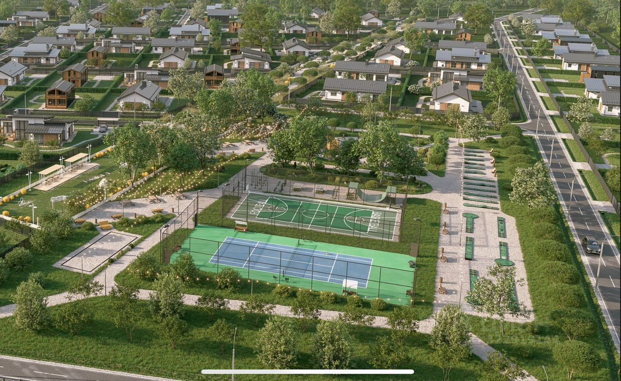 Инфраструктура посёлка будет классной и гармоничной: костровые зоны, много зелени, беседки, система водоотведения вдоль дорожек, спортивные зоны и много много всего.