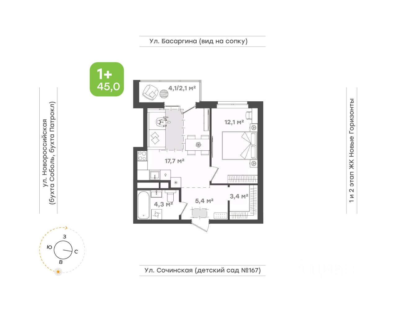 Кухня-гостиная 17,7 кв.м. с выходом на балкон для шумных компаний и тёплых встреч