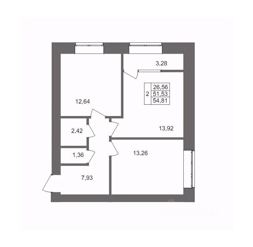 Общая площадь54,81 м2