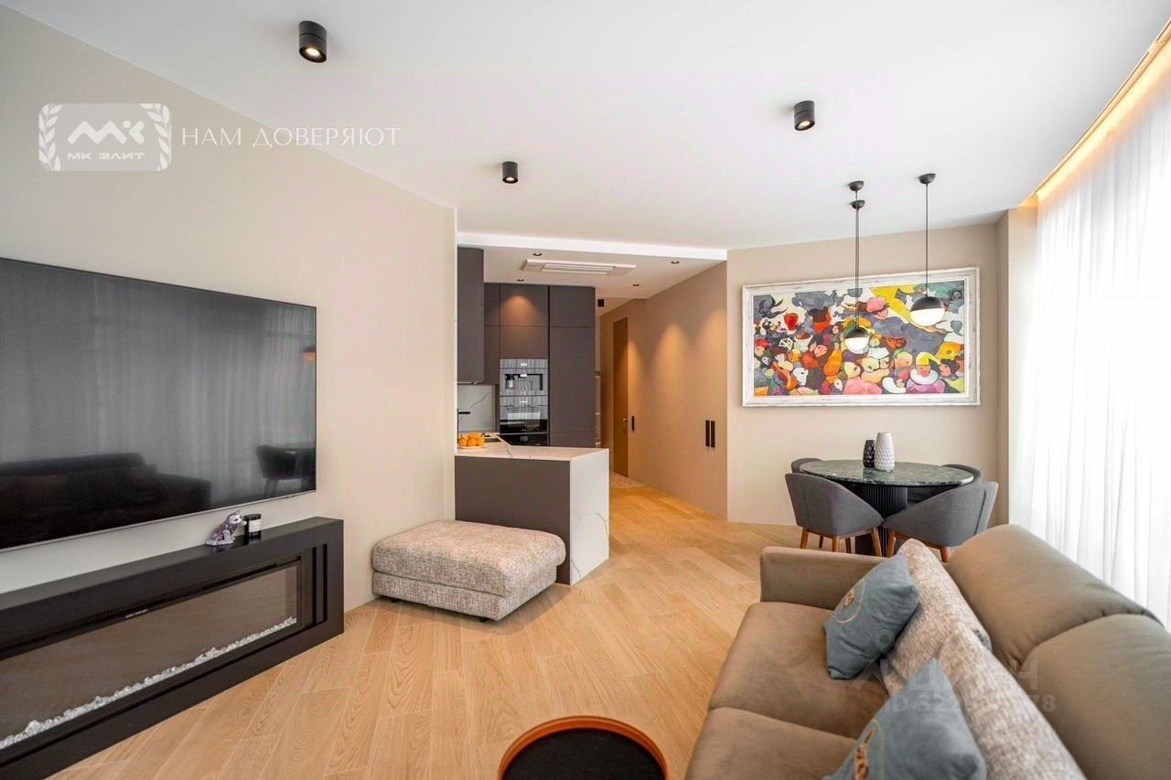 В каждой комнате встроенный потолочный кондиционер Мitsubishi. Вся встроенная техника Мiеlе актуальных последних моделей, сантехника Роrсеlаnоsа (Испания), электрокамин в гостиной для уютных семейных вечеров, шторы на электроприводе.