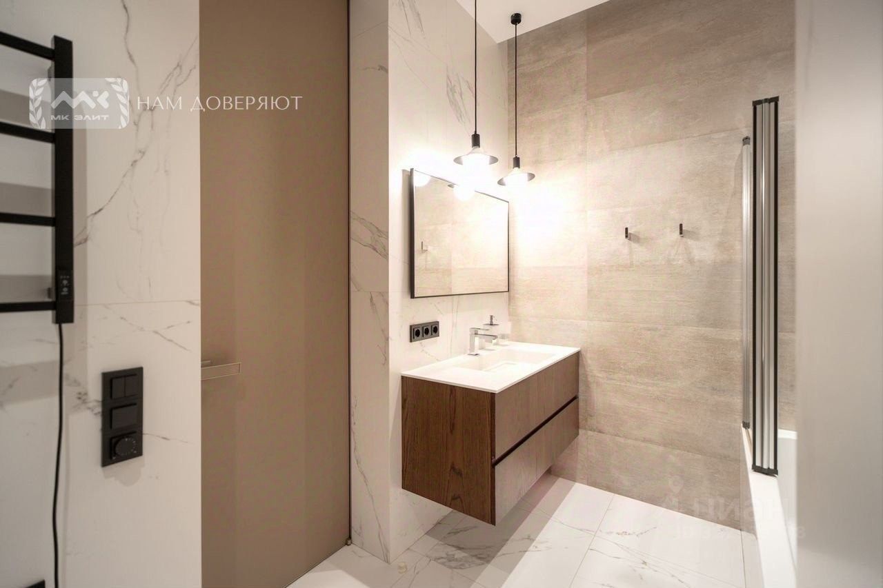 В отделке использованы натуральные дорогие и качественные материалы: паркетная доска, кварцевый агломерат, все освещение премиального бренда 'Lеd mоnstеr'. Высокие итальянские двери в потолок бренда АDL.