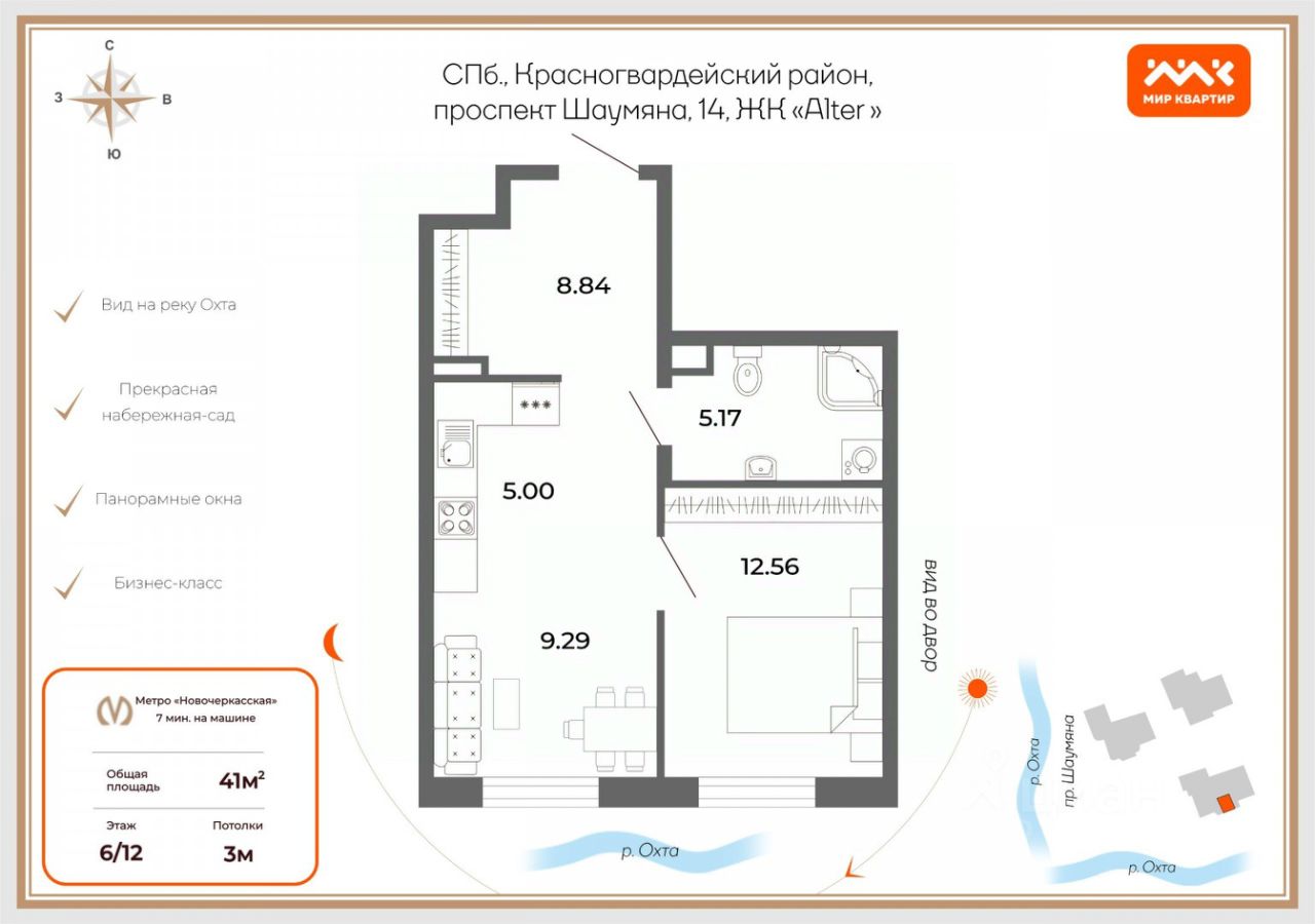 Арт. 120245216 Вариант для любящего уединение либо для двоих. Квартира новая. Продуманная функциональная планировка. Гостиная, совмещенная с кухонной зоной + спальня, квадратная прихожая 8, 5 кв м. Штульповые распашные окна в пол с видом на набережную и реку Охта. На лестничной площадке - тамбур на 2 квартиры. Камерно.
