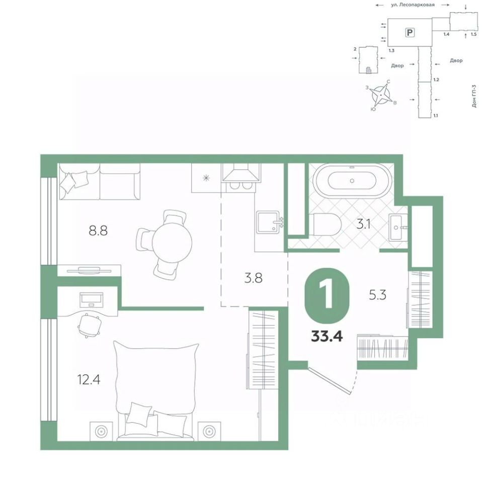 продам 1-к, Лесопарковая, 205 940 000 ₽